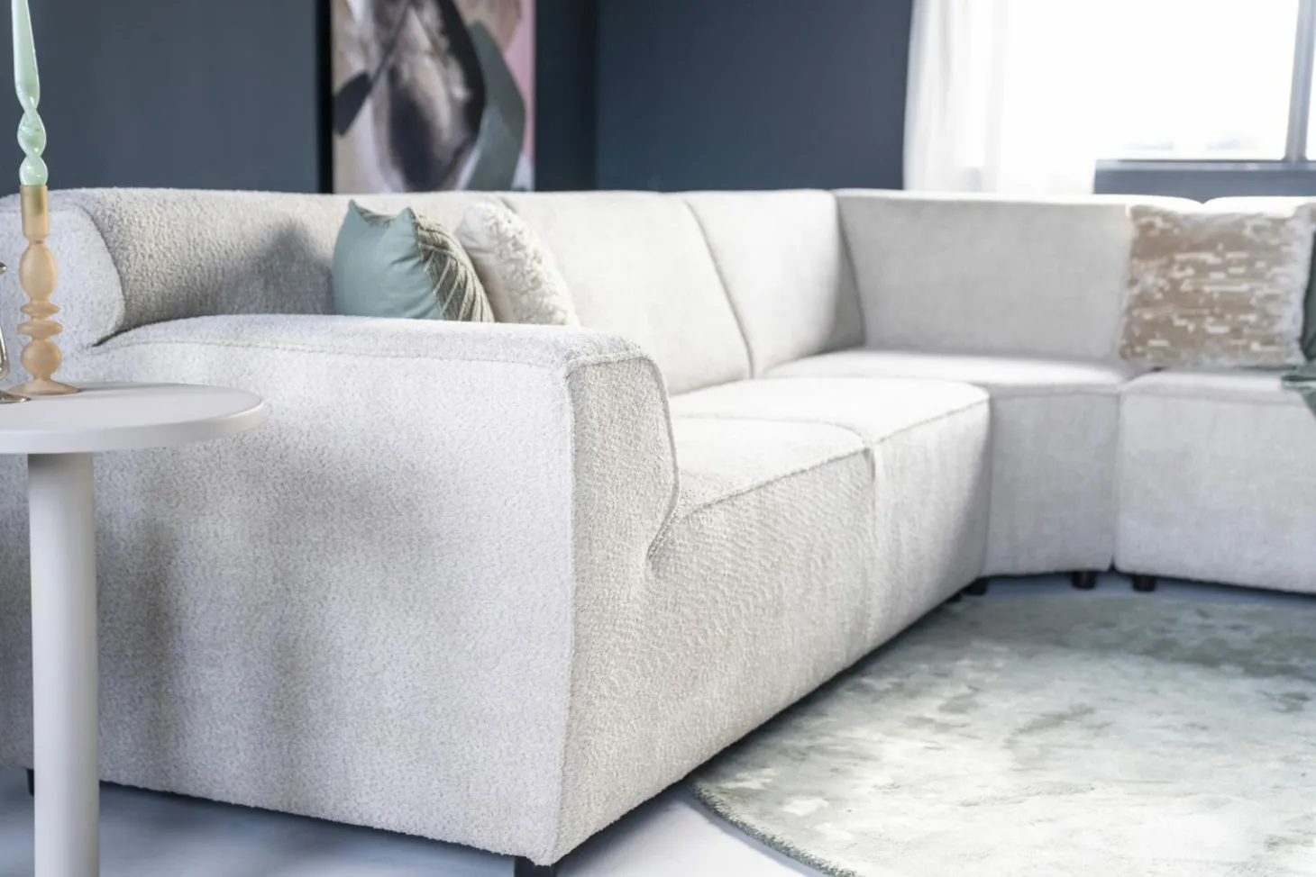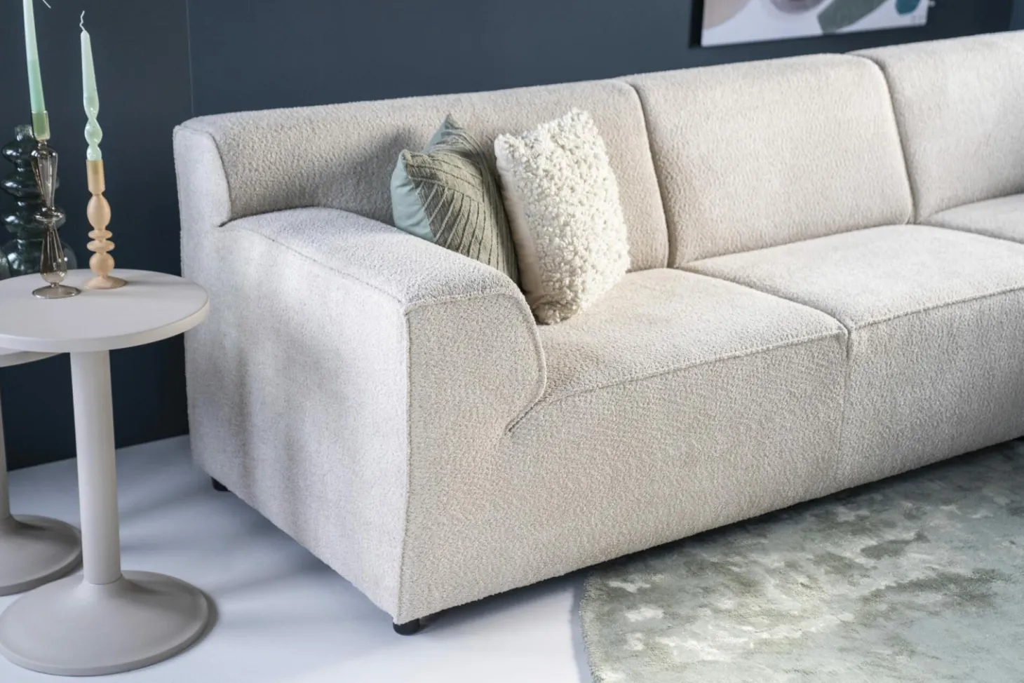 Wanneer je het beste van twee werelden combineert krijg je Rianne. Geïnspireerd op een van de topmodellen Amarillo heeft ze doorgestoffeerde elementen tot aan de grond. De ingetrokken naden bij de armleuning laten de zitting optisch groter lijken, net als die van Annebeth. Met maar liefst 24 verschillende elementen zijn de opstellingen met Rianne eindeloos.