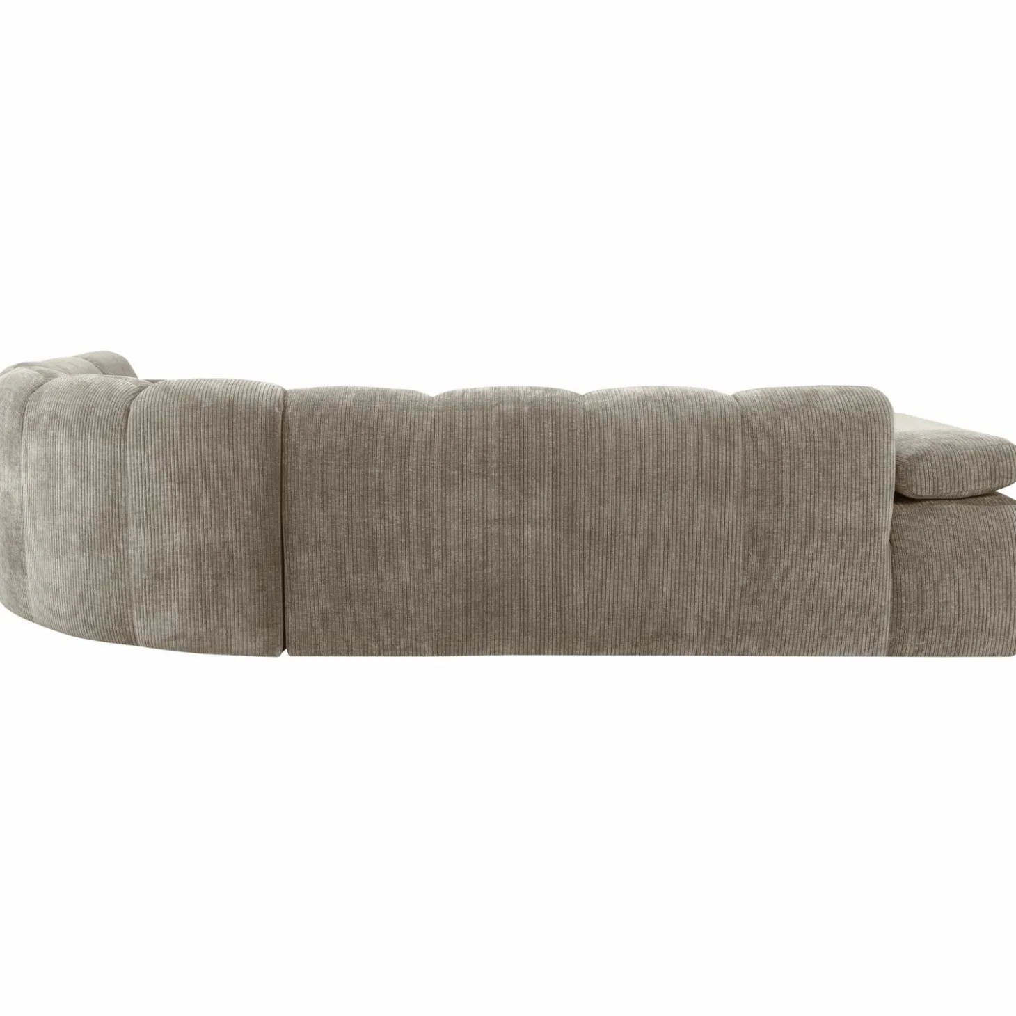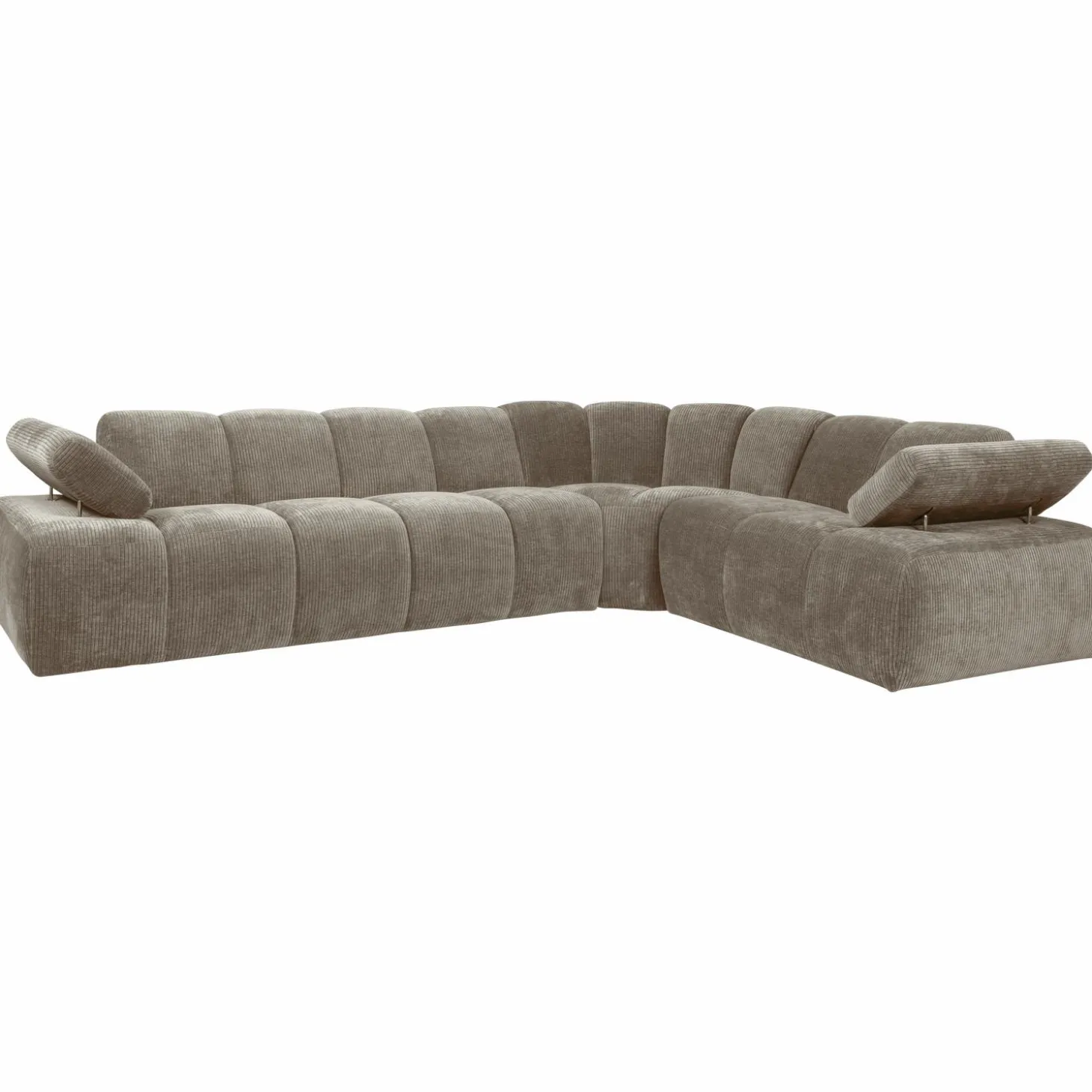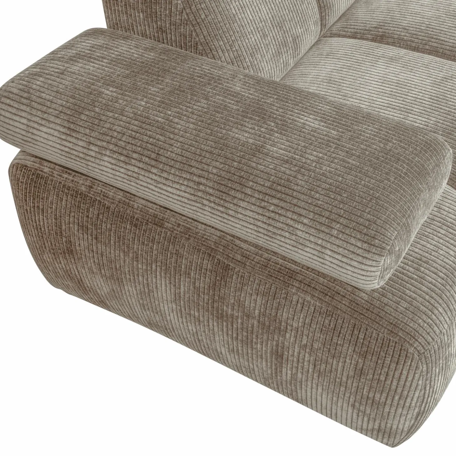 De donkerzandkleurige ribstof, gemaakt van 100% polyester, straalt luxe uit en voelt heerlijk zacht aan. Dankzij de stevige jacquard weeftechniek is de stof niet alleen mooi, maar ook duurzaam met een indrukwekkende Martindale score van 80.000. De handmatig verstelbare armleuningen en de speelse verticale stiksels geven de bank een unieke uitstraling en extra comfort.