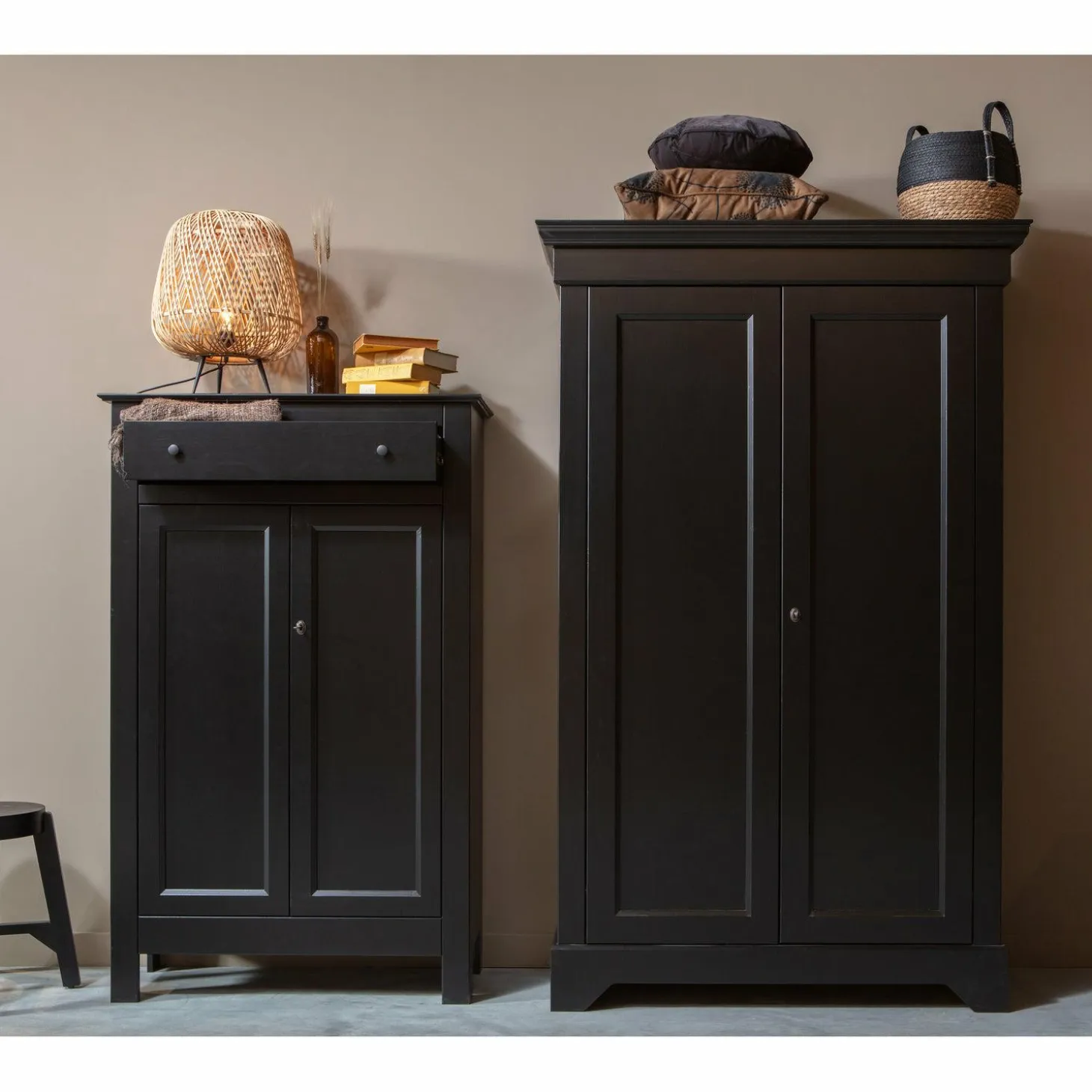 Eva past moeiteloos in diverse interieurstijlen, van landelijk tot modern. Plaats haar in de slaapkamer voor een rustgevende sfeer of in de woonkamer als stijlvol opbergmeubel. Het zwarte grenenhout voegt een vleugje luxe toe aan elke ruimte.