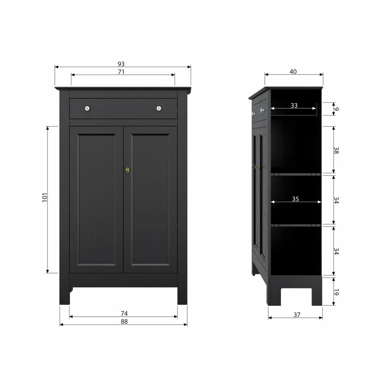 Ontdek de charme van de Opbergkast Eva in stijlvol zwart, een must-have voor elke kamer die een vleugje elegantie kan gebruiken. Deze kast, gemaakt van hoogwaardig FSC-gecertificeerd grenenhout, combineert duurzaamheid met een verfijnde uitstraling. De gladgeschuurde afwerking en matte coating maken van Eva een echte blikvanger.