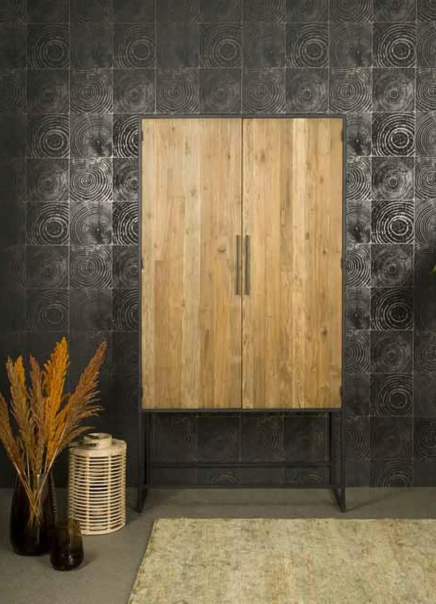 Opbergkast Felino is gemaakt van Teakhout, gecombineerd met staal.