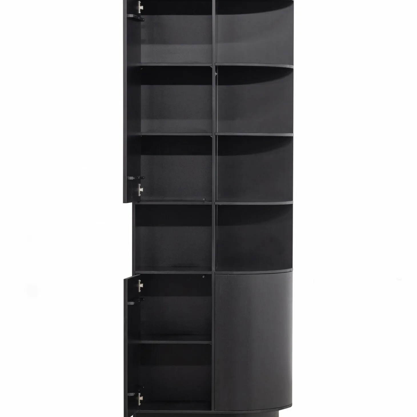 Ontdek de Opbergkast Finca in diepzwart, een stijlvolle toevoeging aan jouw interieur. Deze kast van massief grenenhout, afgewerkt met een matzwarte coating, straalt tijdloze elegantie uit. Met een hoogte van 210 cm en een breedte van 78 cm biedt de Finca kast voldoende ruimte voor al je spullen, terwijl het moderne push-to-open systeem zorgt voor een strakke uitstraling zonder handgrepen.