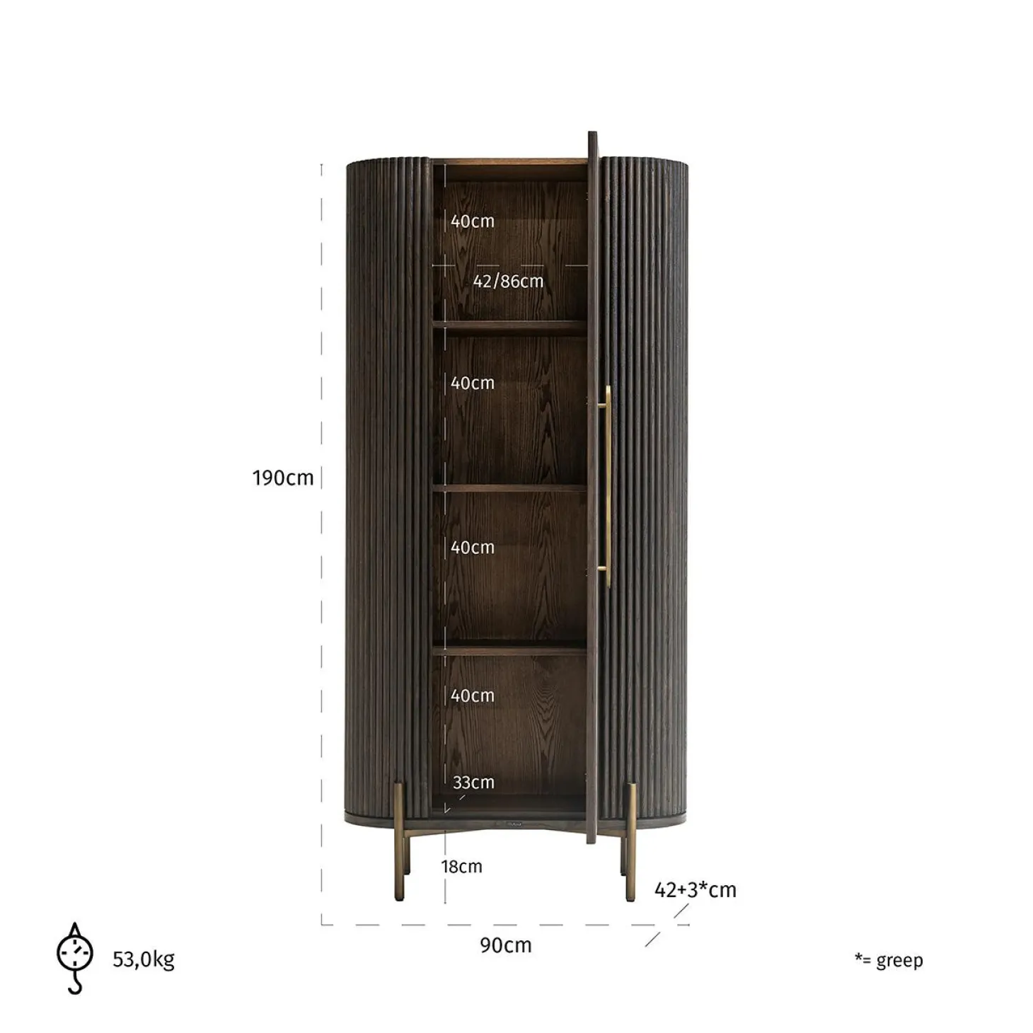 | Materiaal | Eikenhout en geborsteld goudkleurig ijzer |