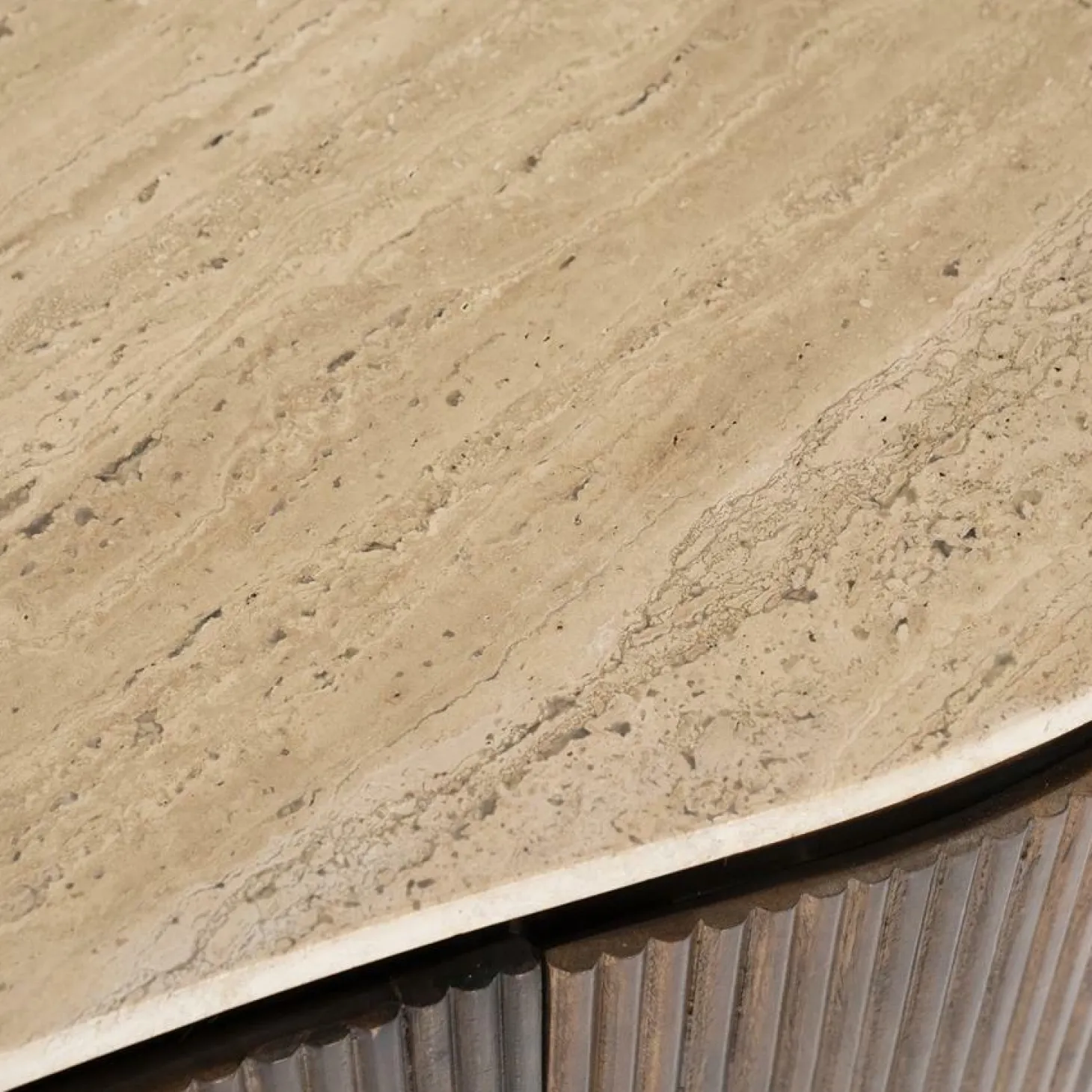 We zien steeds meer Travertin in ons interieur. De Bureau Mari heeft een tafelblad gemaakt van Travertin. Travertin oogt heel natuurlijk. Dit komt door het gesteente dat kenmerkt zich door onregelmatige poriën en kleuren. Hierdoor is elk tafelblad, gemaakt van Travertin, uniek. Het organisch gevormde tafelblad en het mangohouten frame van spijlen maakt de Mari een echte eye catcher in jouw interieur.