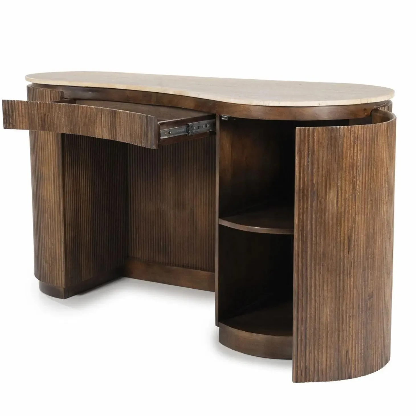 Eleonora Organisch Bureau Mari Mangohout en Travertin – Bruin