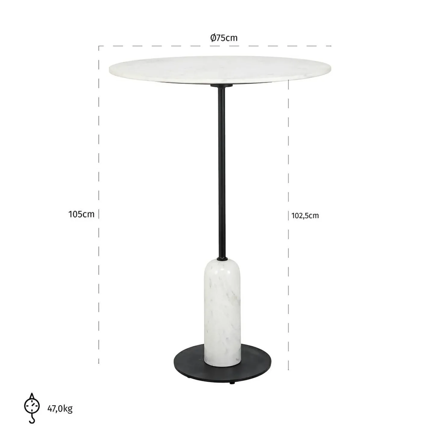 | Materiaal | Marmeren blad met ijzeren onderstel |