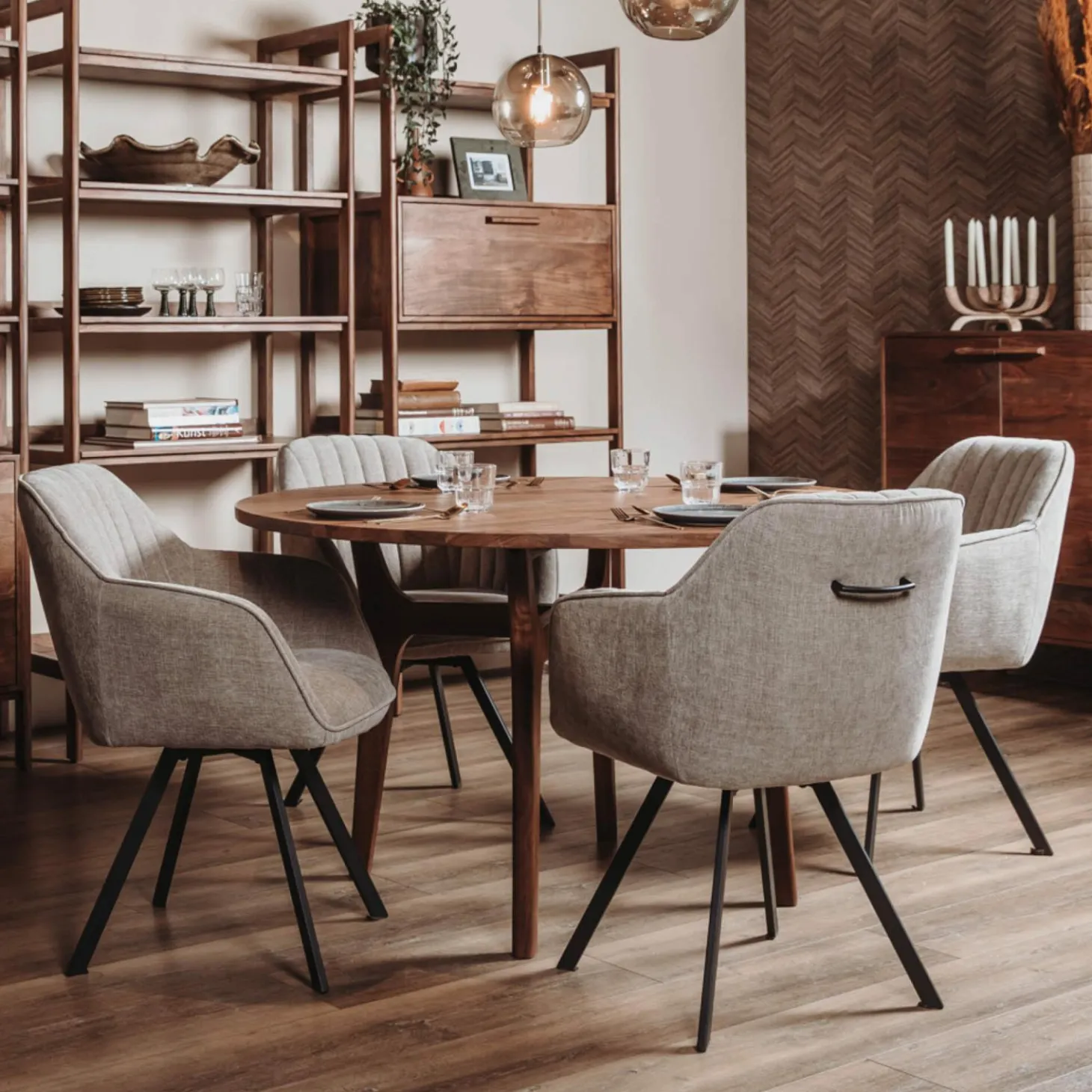 | Materiaal | Massief Accaciahout met walnoot afwerking |