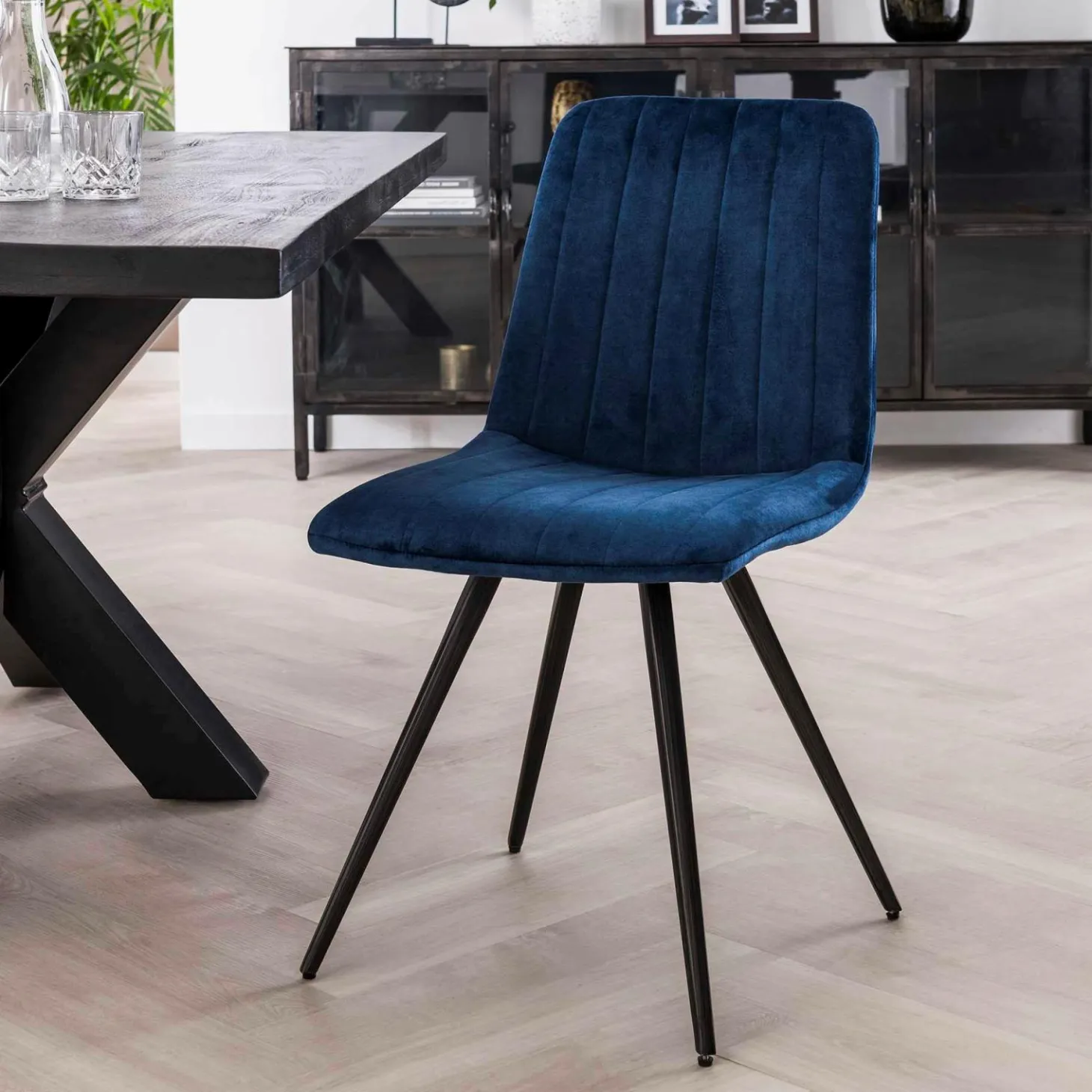 Loft24 Stoel Straight Stitch Velvet – Blauw