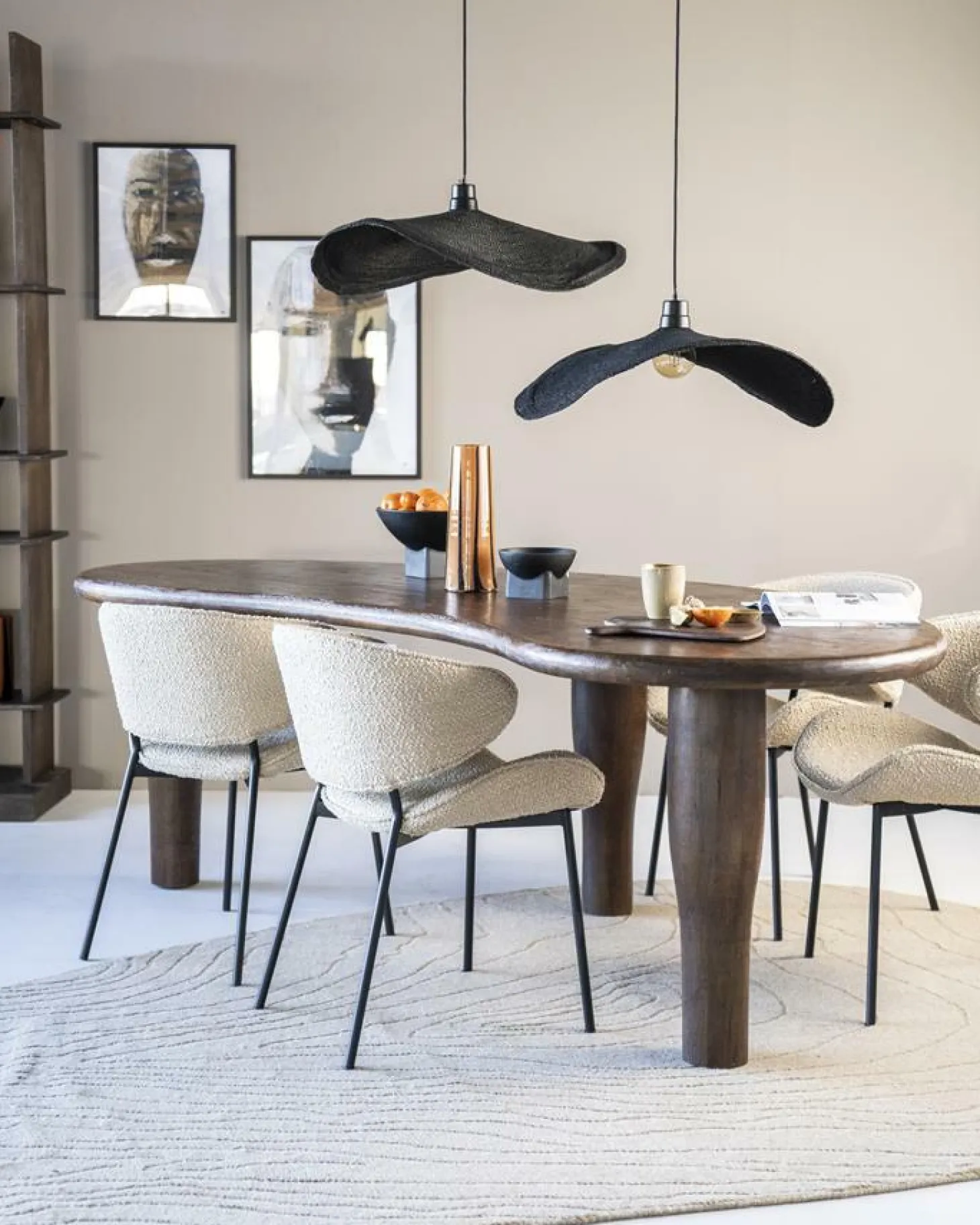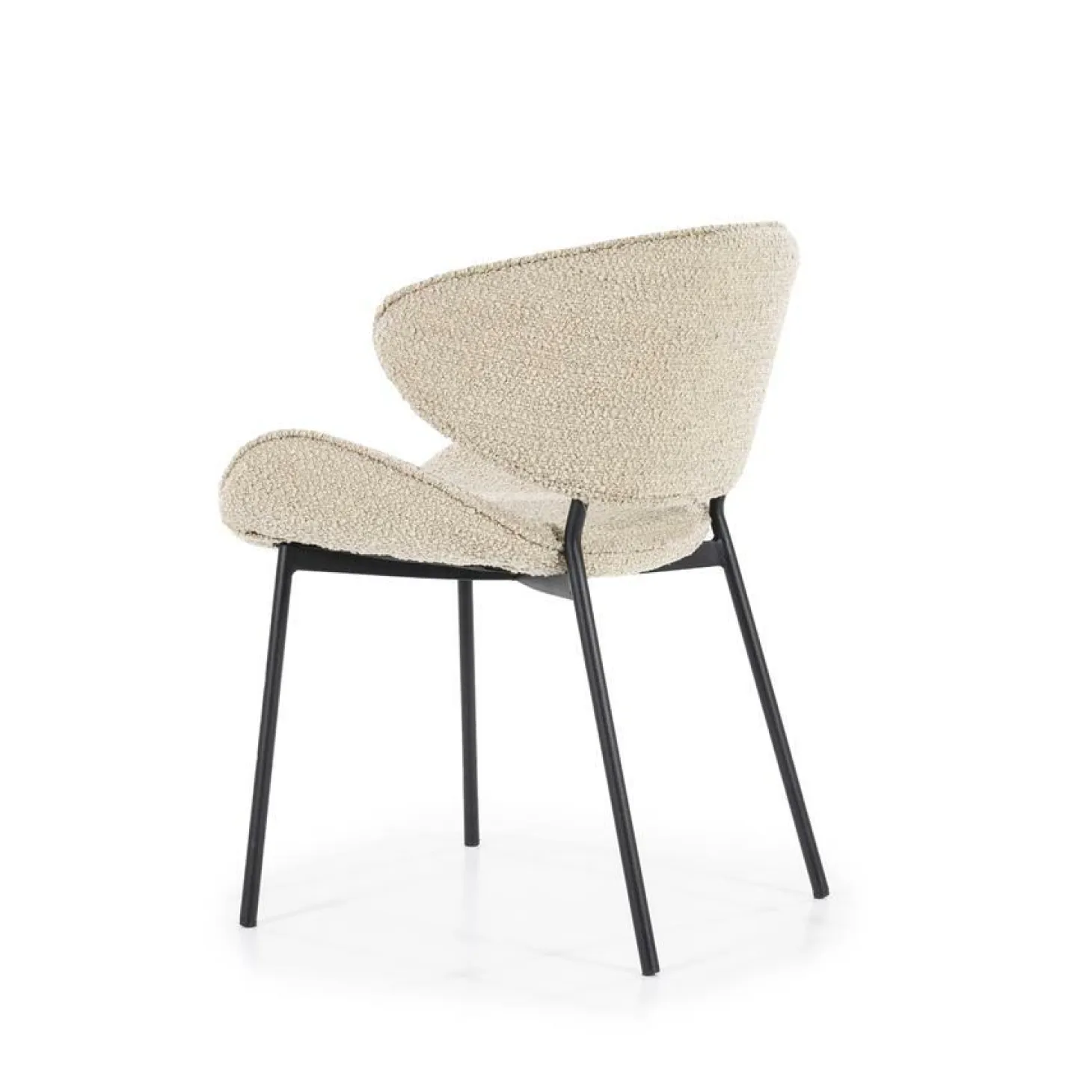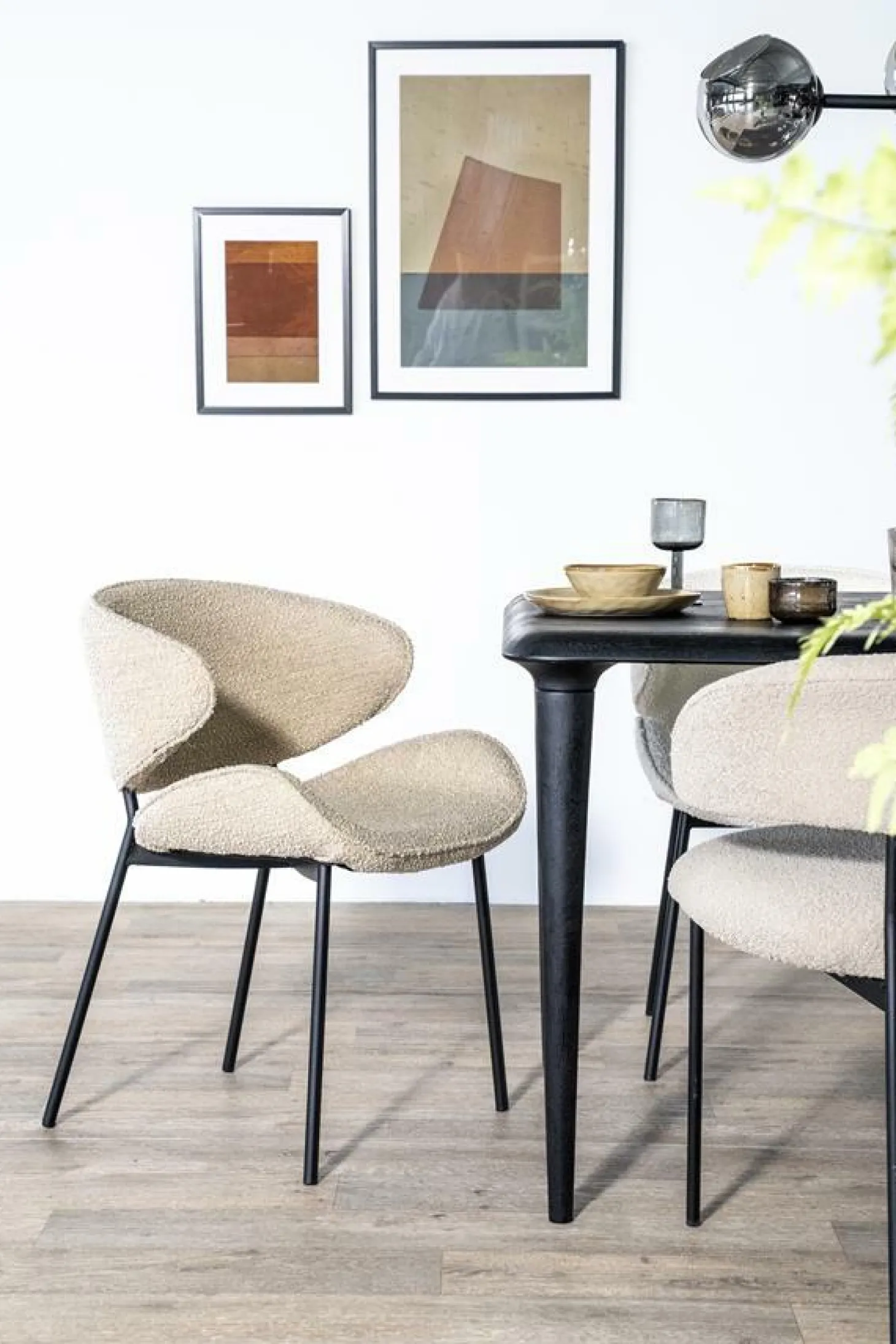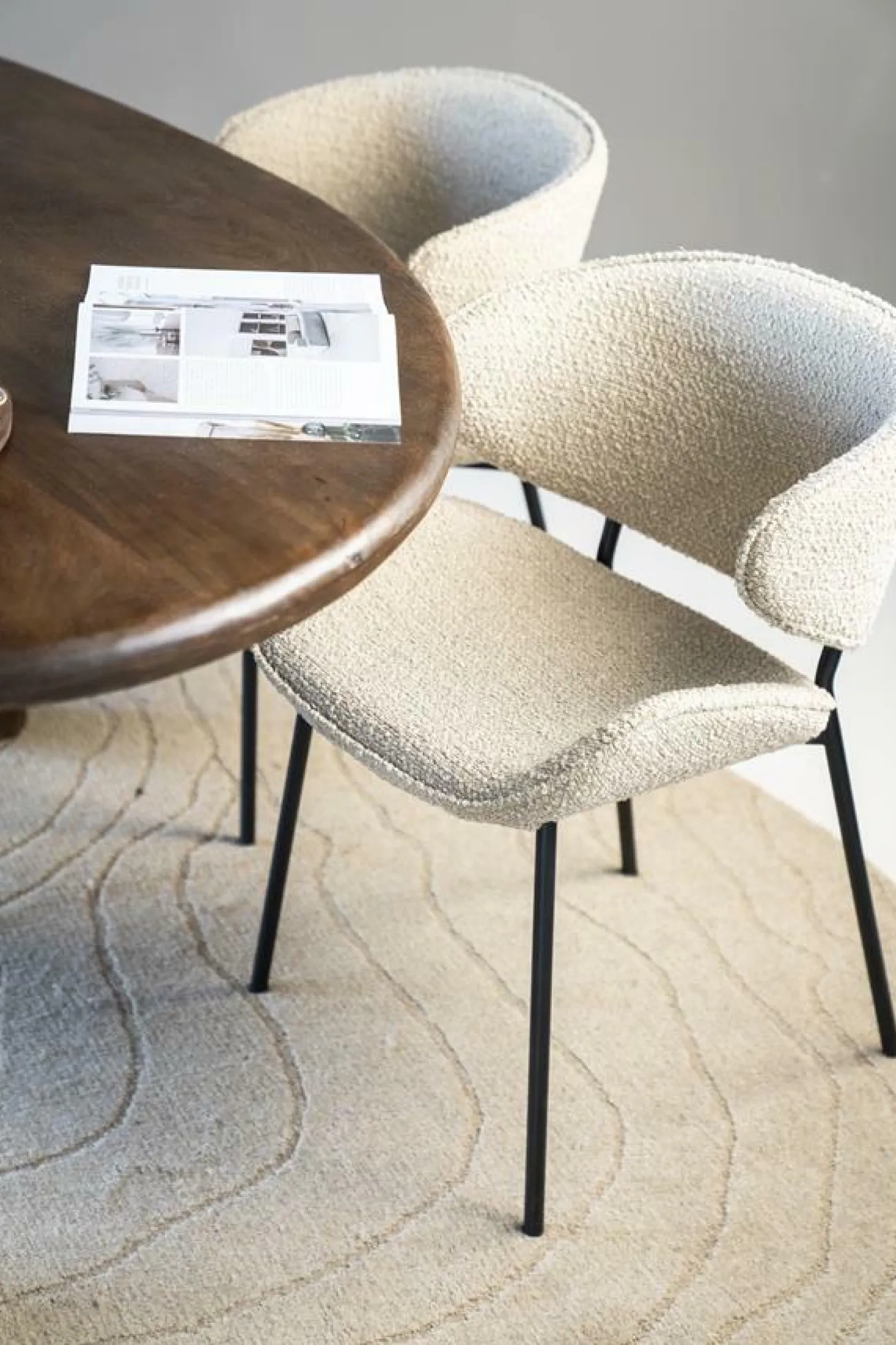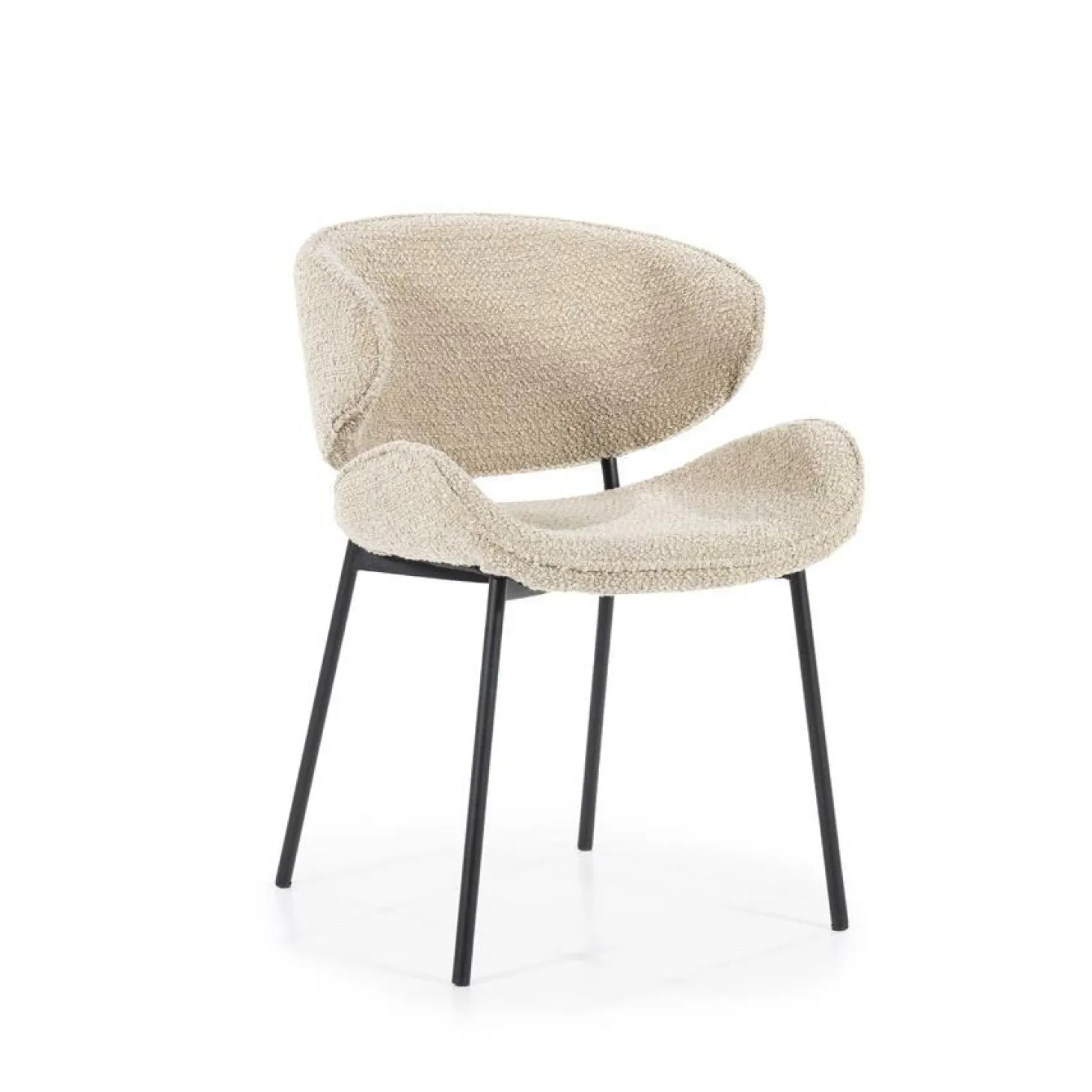 Stoel Tess is nieuw in de collectie van Eleonora. De eetkamerstoel Tess heeft een Scandinavisch uiterlijk dankzij haar ergonomische vormen in combinatie met de Spark bouclé stof.