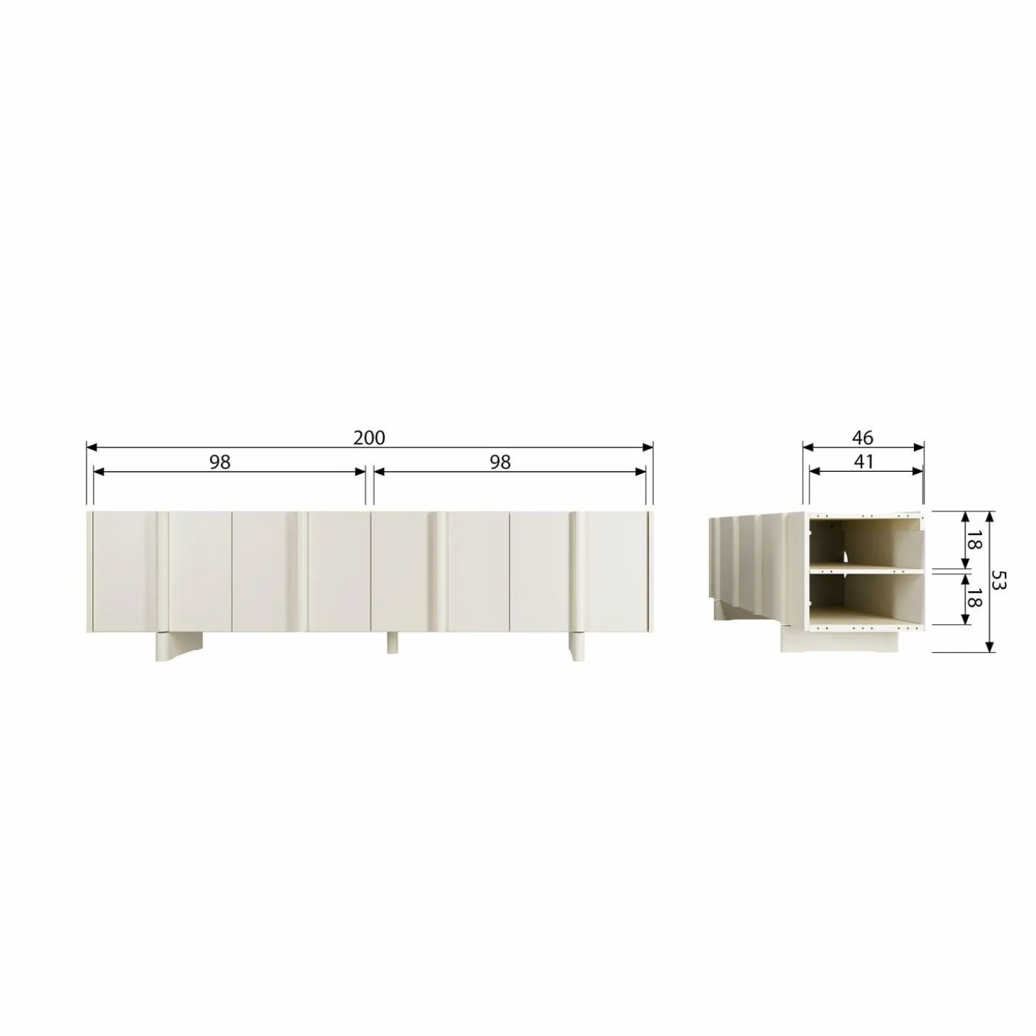 Met zijn tijdloze design en speelse lijnenspel is de Basu niet alleen een lust voor het oog, maar ook een praktische keuze. De royale afmetingen (H 53 cm x B 200 cm x D 46 cm) bieden voldoende ruimte voor al je media-apparatuur en decoratieve items. De vier kastdeuren en vakken zorgen voor een opgeruimde uitstraling, terwijl de stevige constructie een draaggewicht van 35 kg op de bovenzijde en 15 kg per plank garandeert.
