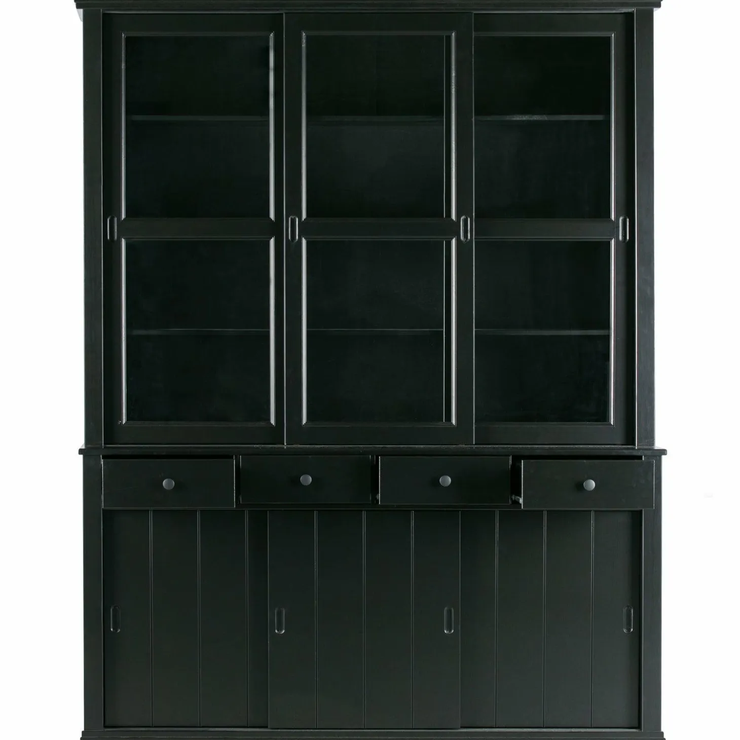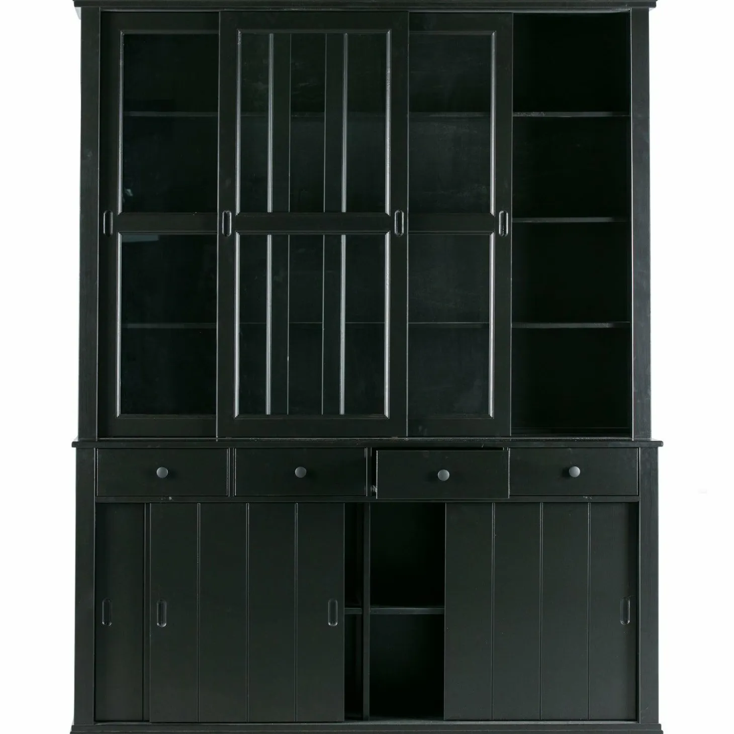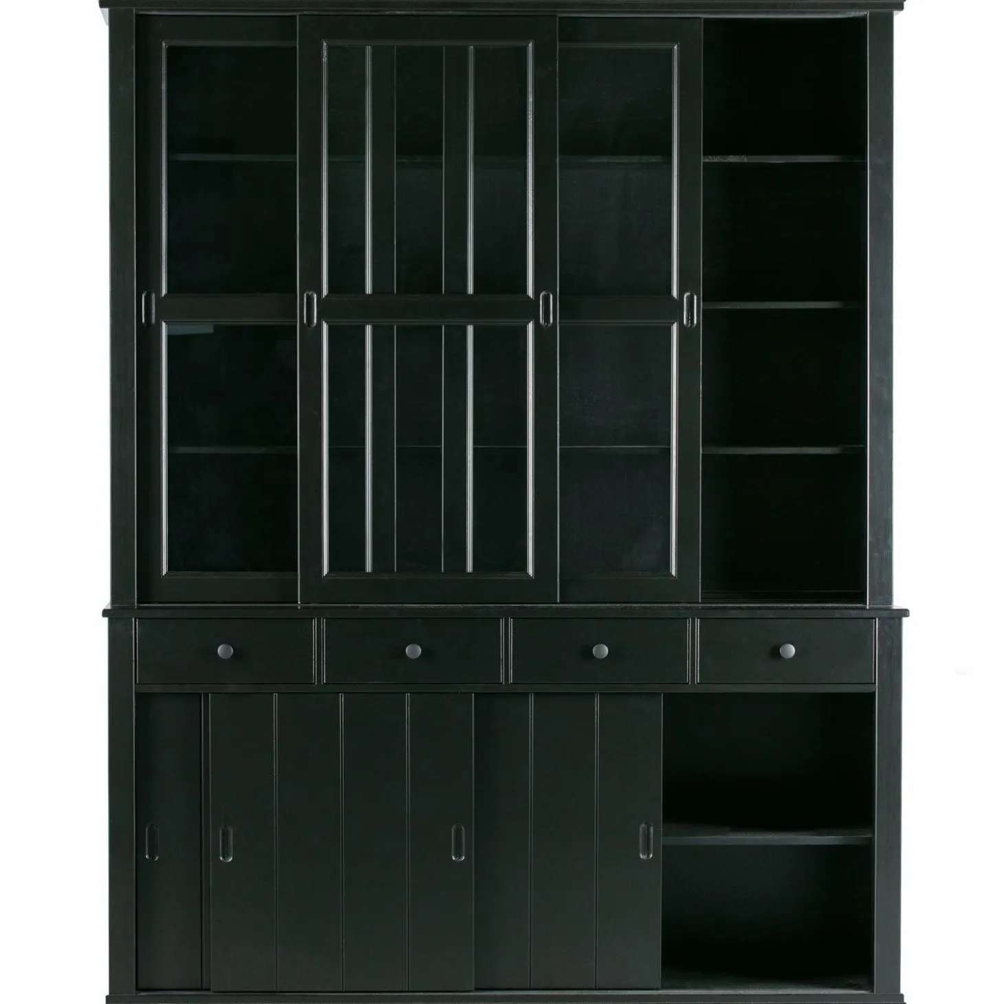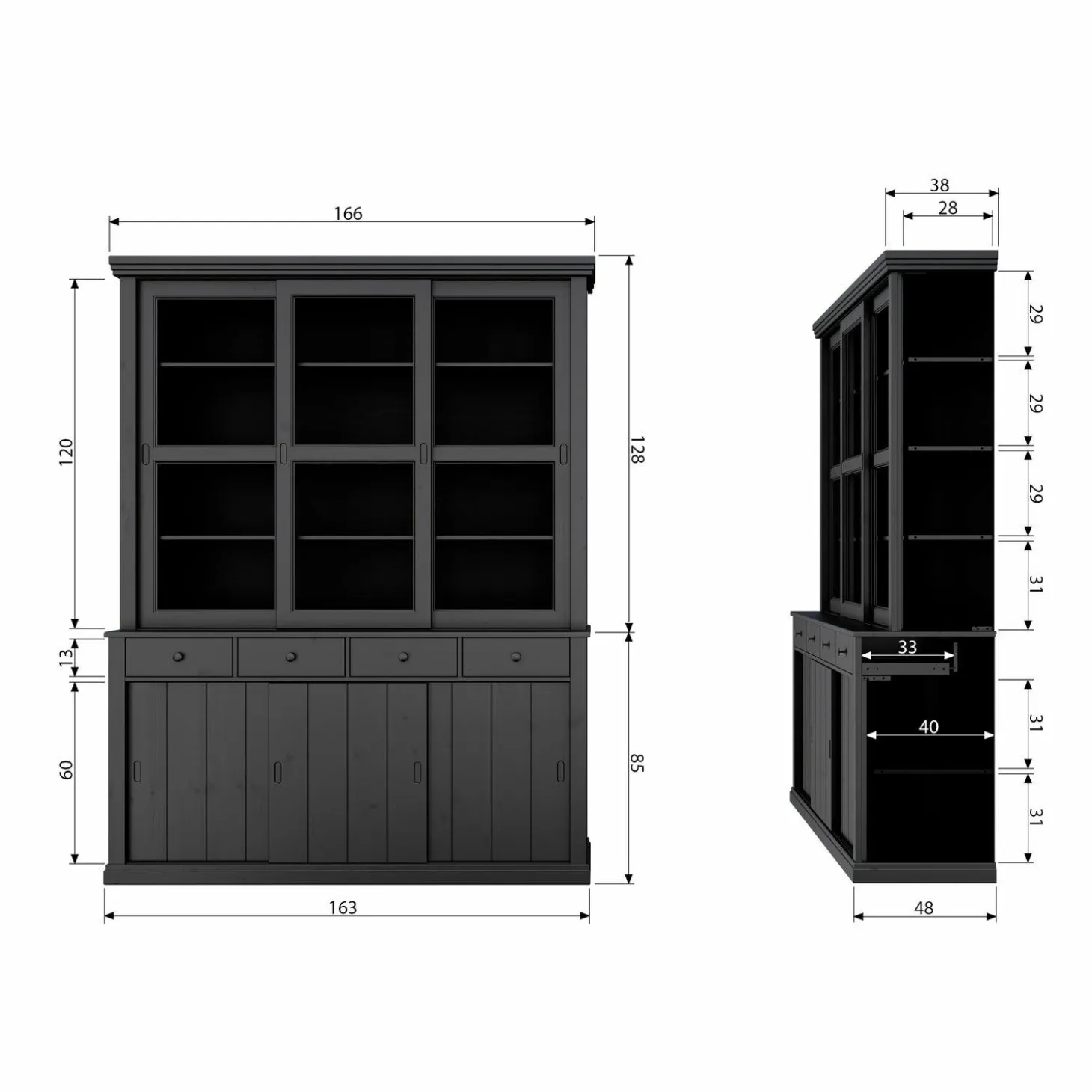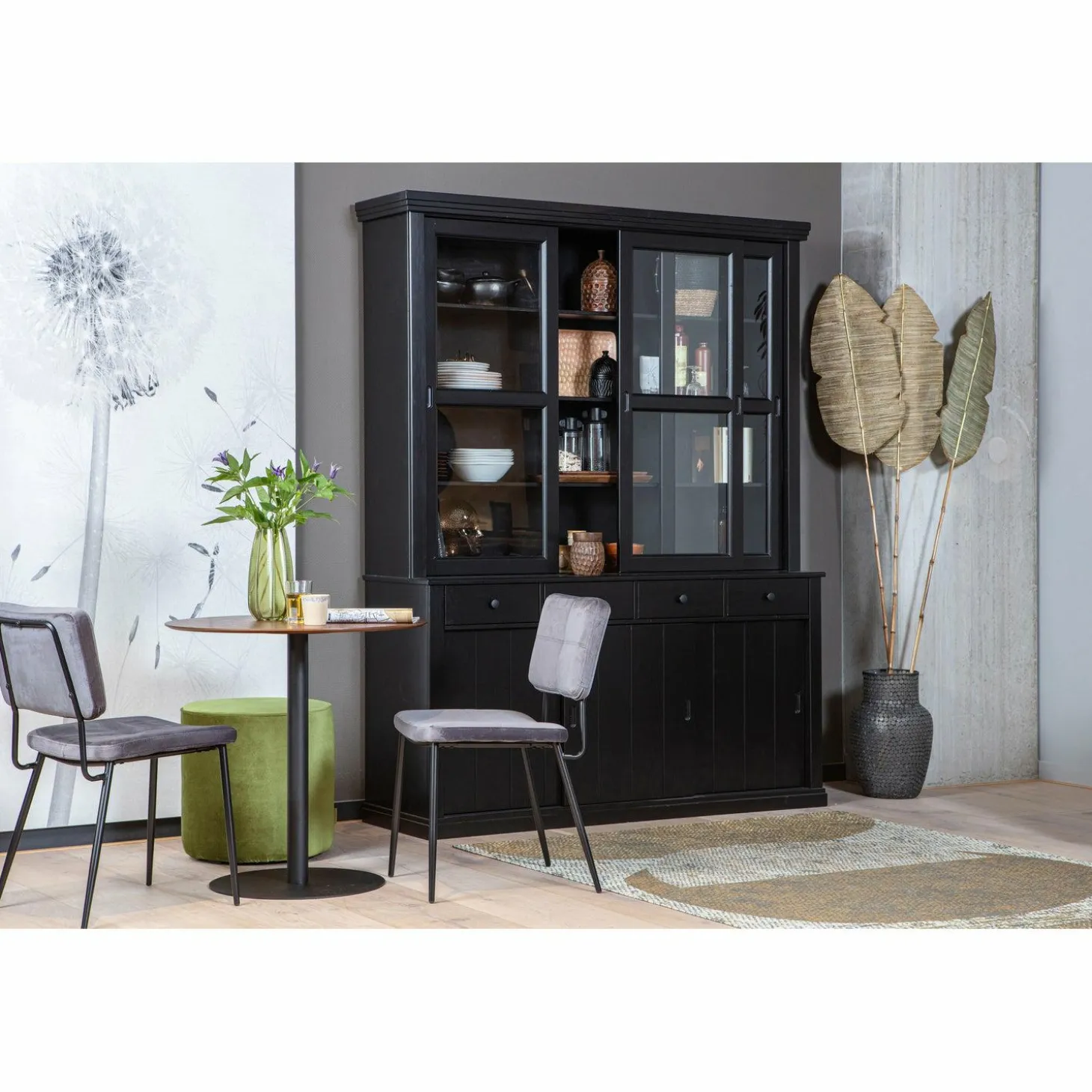 Ontdek de Vitrinekast Lagos in DiepZwart, een meesterwerk van WOOOD dat jouw interieur naar een hoger niveau tilt. Stel je voor: een avond thuis, omringd door de warme uitstraling van massief grenenhout, terwijl je favoriete servies en decoraties schitteren achter de glazen schuifdeuren. Deze kast is niet zomaar een meubelstuk; het is een statement.