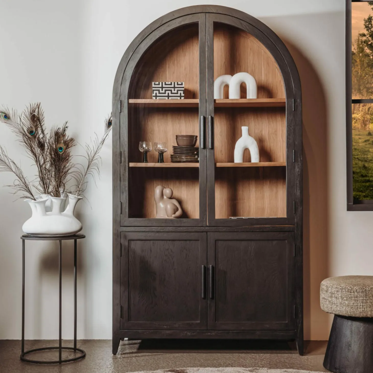 | Materiaal | eikenfineer en glas, Geborsteld mangohout afgewerkt in zwarte kleur |