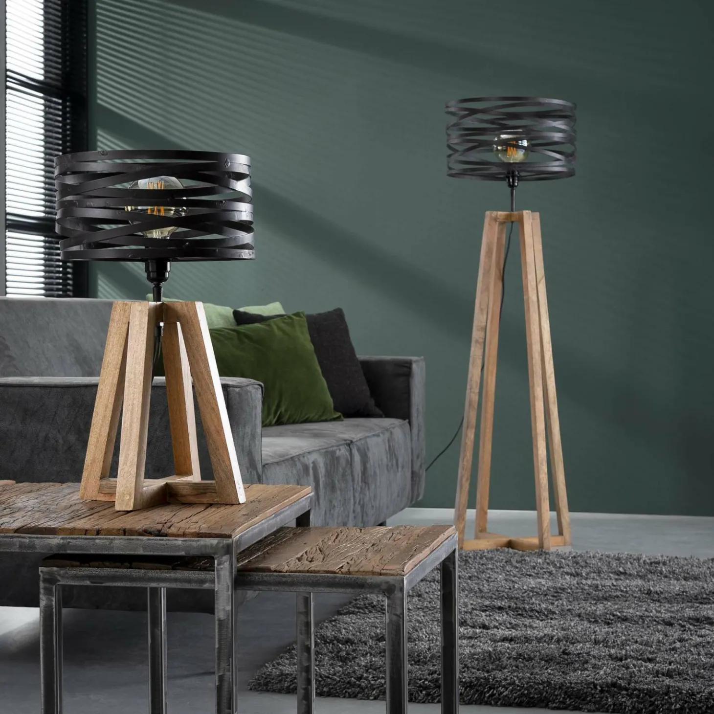 Deze stijvolle vloerlamp heeft een getwist metalen kap in combinatie met een gekruist houten frame. De kap is afgewerkt in slate grey met een touch of brown. Het armatuur en de kap geven deze lamp een speelse eigentijdse uitstraling. Er wordt aanbevolen om LED lichtbron (8466) Te gebruiken. Deze vloerlamp maakt deel uit van een serie bestaande uit een tafellamp, een hanglamp en een vloerlamp.