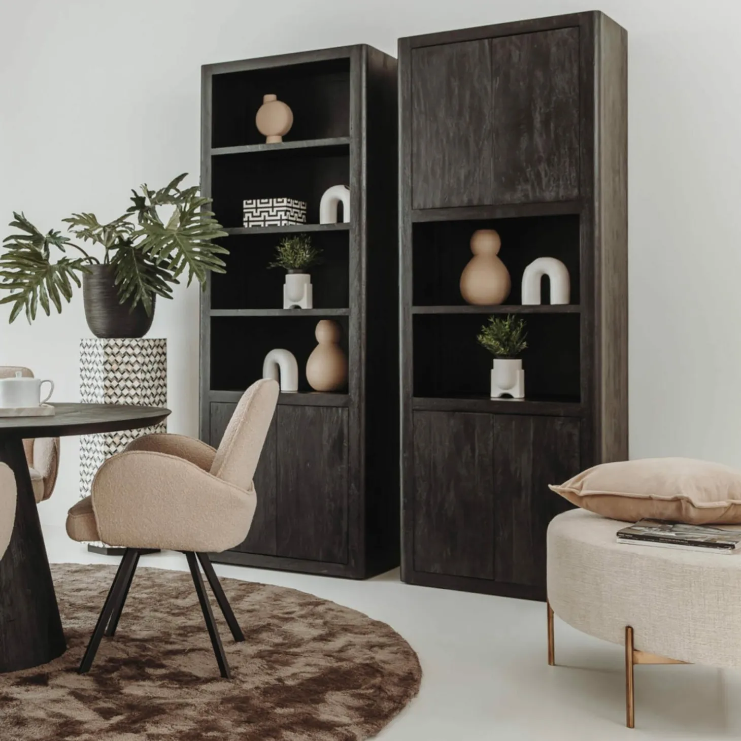 | Materiaal | Massief geborsteld mangohout afgewerkt in zwarte kleur |