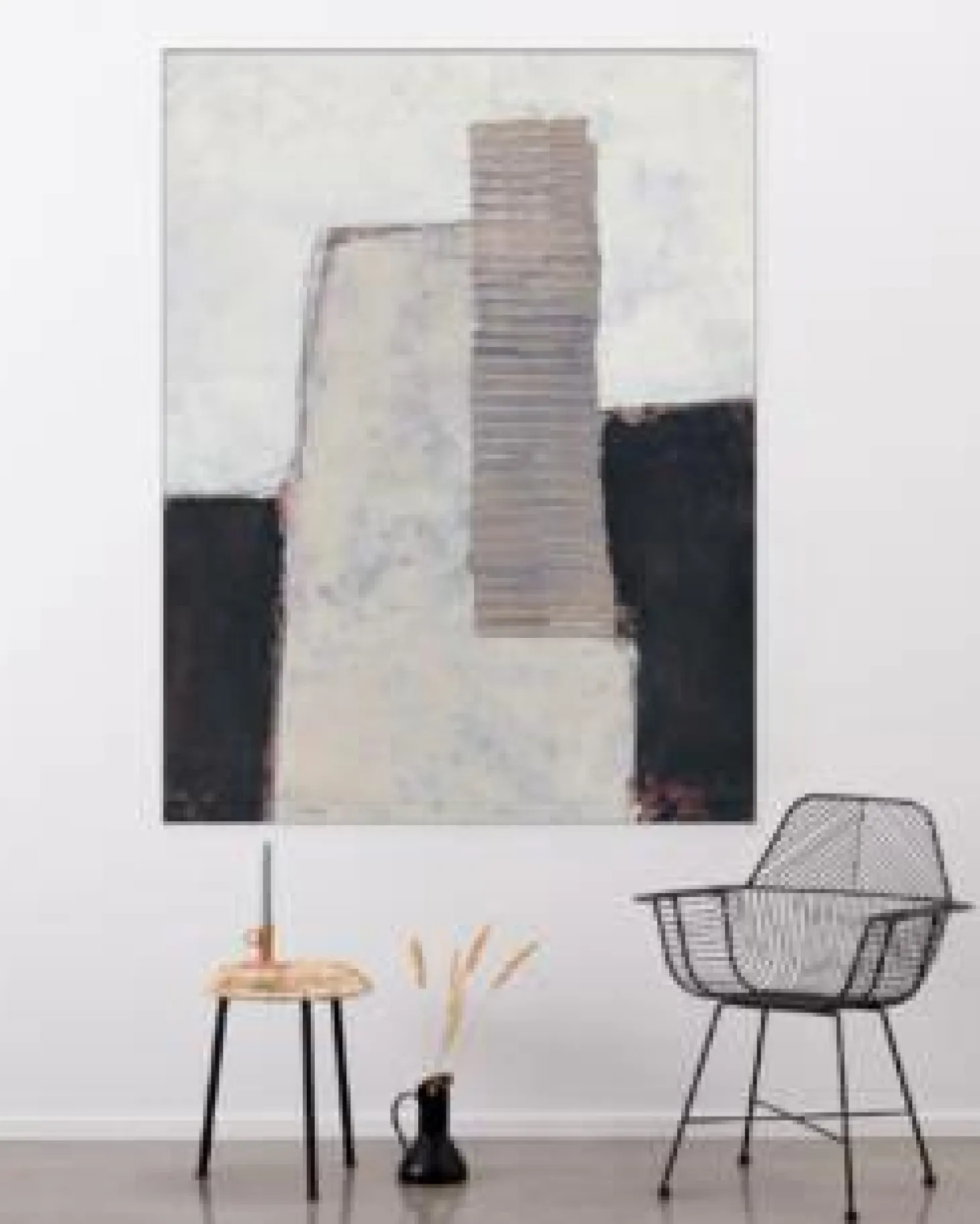 Met het zwarte aluminium frame passend bij de maat van het wandkleed span je het wandkleed strak in de frame. Het frame hangt hiermee strak aan de wand.