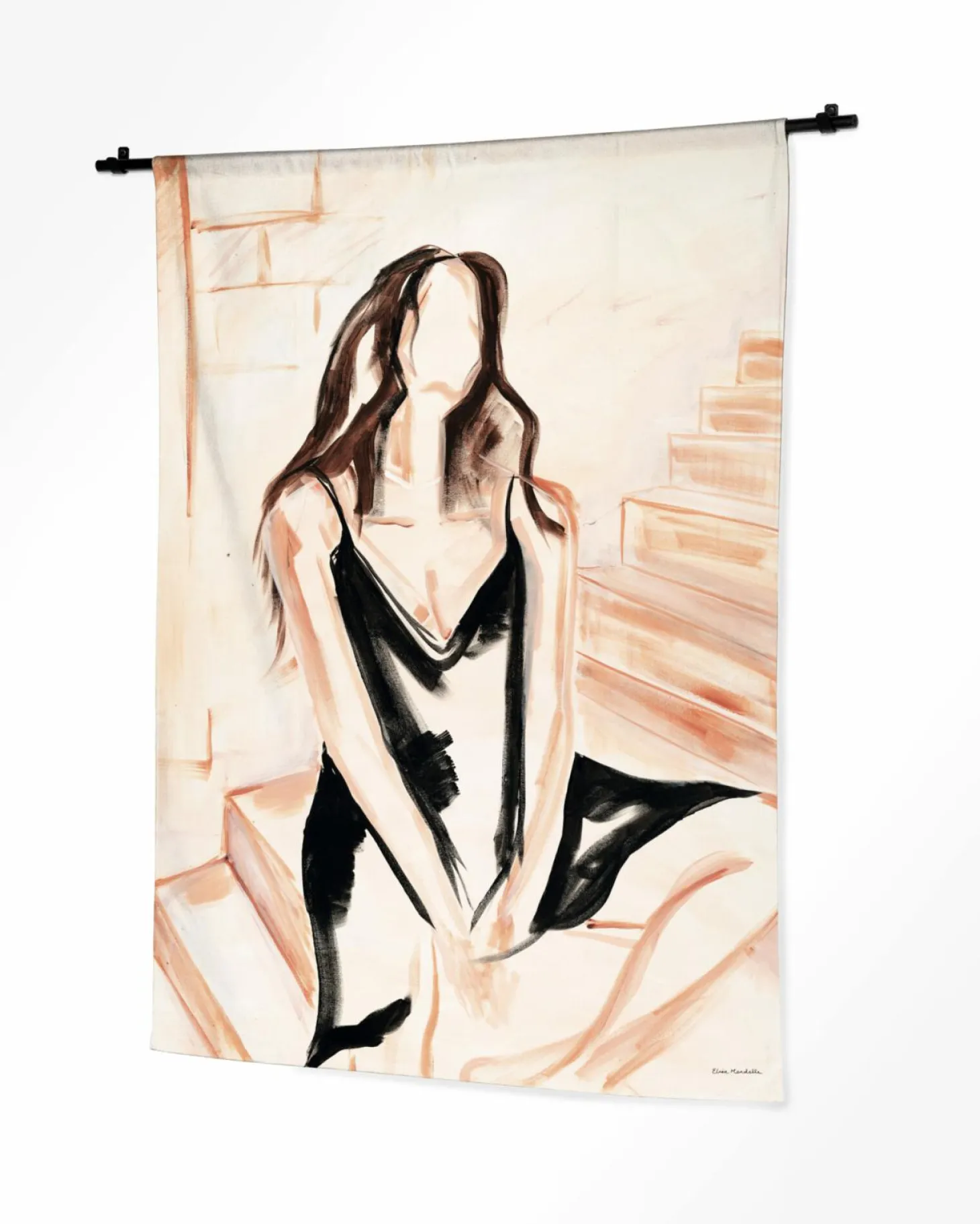 De roede bestaat uit een passende roede bij de maat van het wandkleed met een set ophangbeugels naar keuze. De Curve of de Hooked. Met dit systeem hangt je wandkleed los aan de wand. De roede en ophangbeugels zijn gemaakt van zwart gepoedercoat metaal.