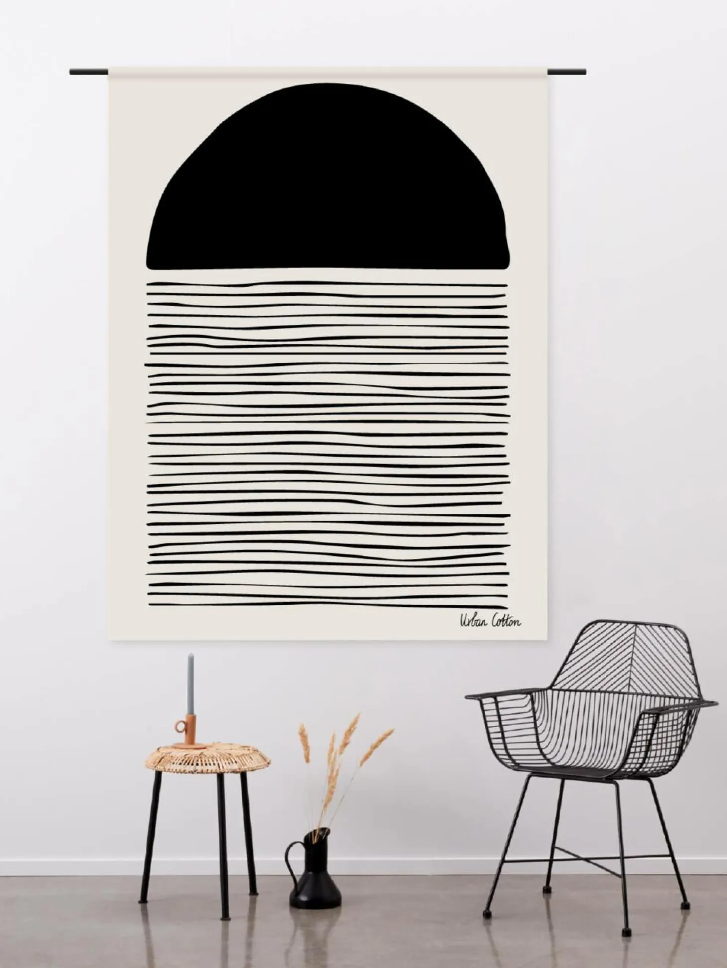 Op zoek naar wat unieks aan de muur? Kies dan voor een van de gave wandkleden van Urban Cotton. Deze mooie aquarel in prachtige zwart-wit-grijs tinten past in elk interieur.